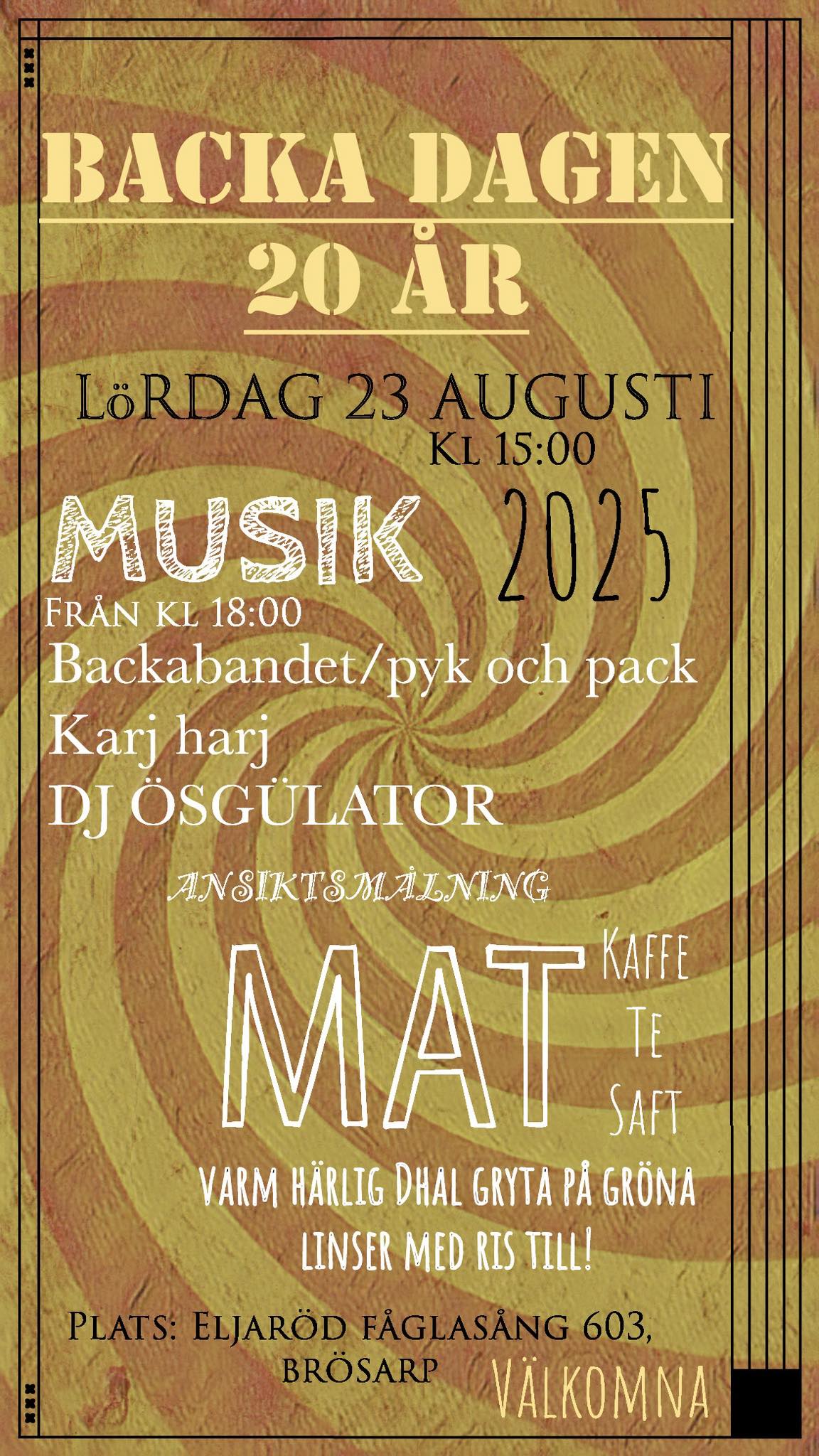 Hej kära backavänner! För att vi ska få en så trevlig dag som möjligt kommer här lite praktisk information: